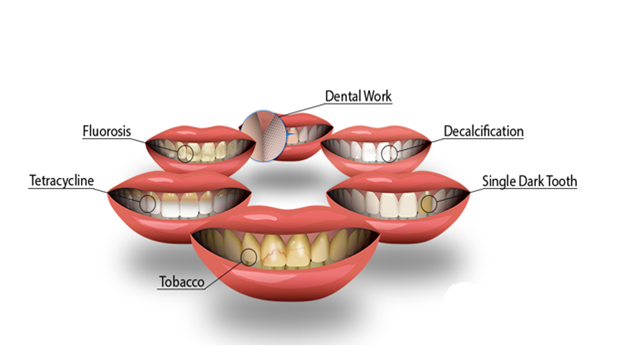 مواردی که اغلب سبب تغییر رنگ دندانها میشوند به شرح زیر هستند: